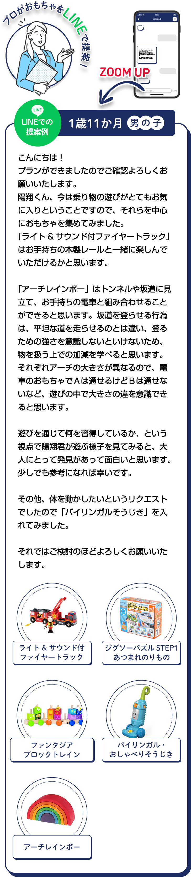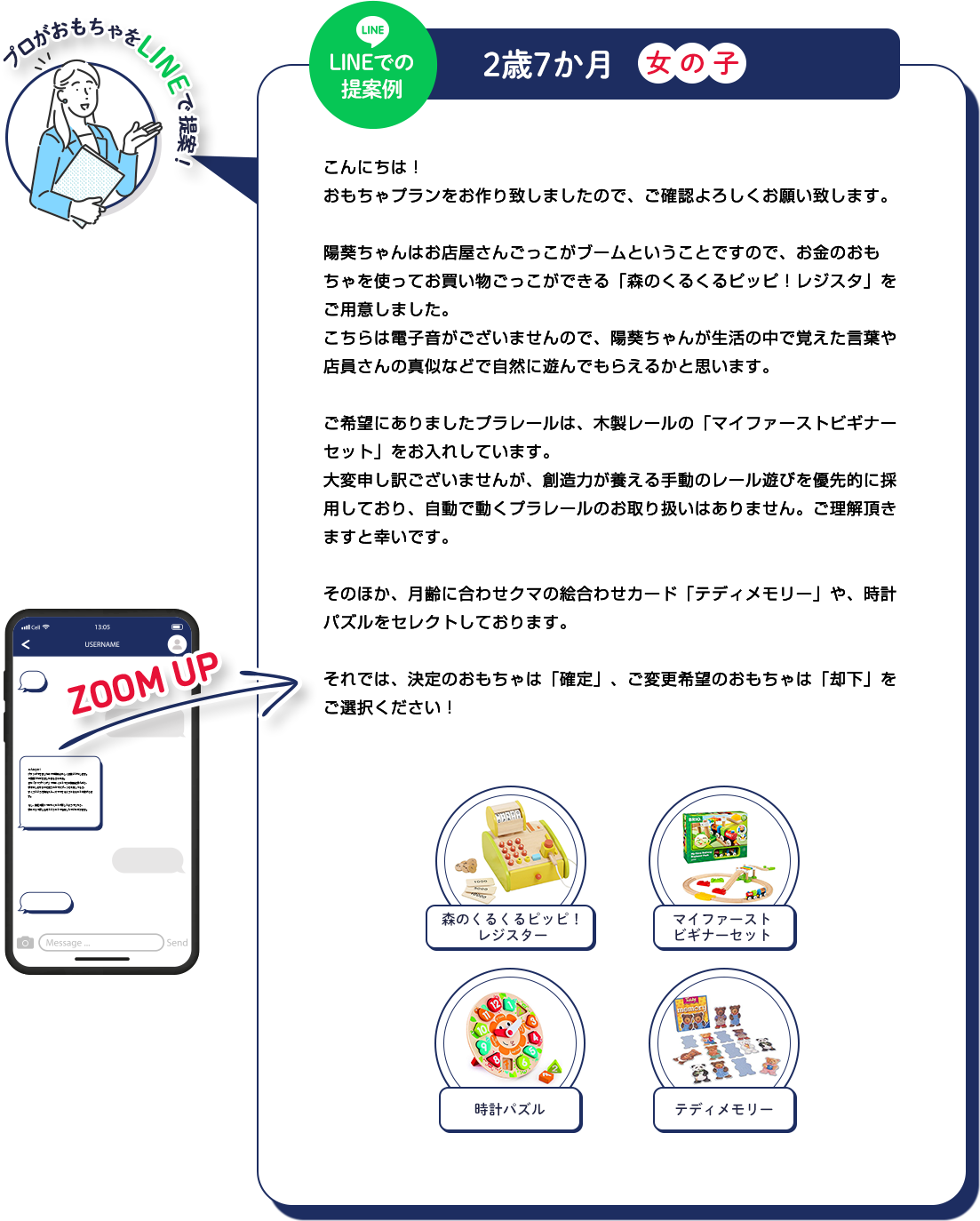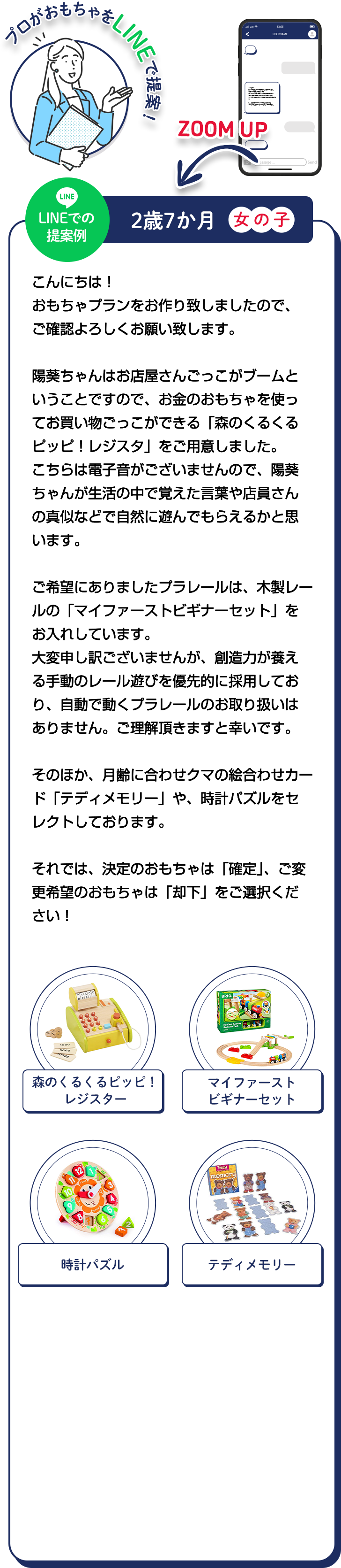 まずLINEでおもちゃプランを提案します。