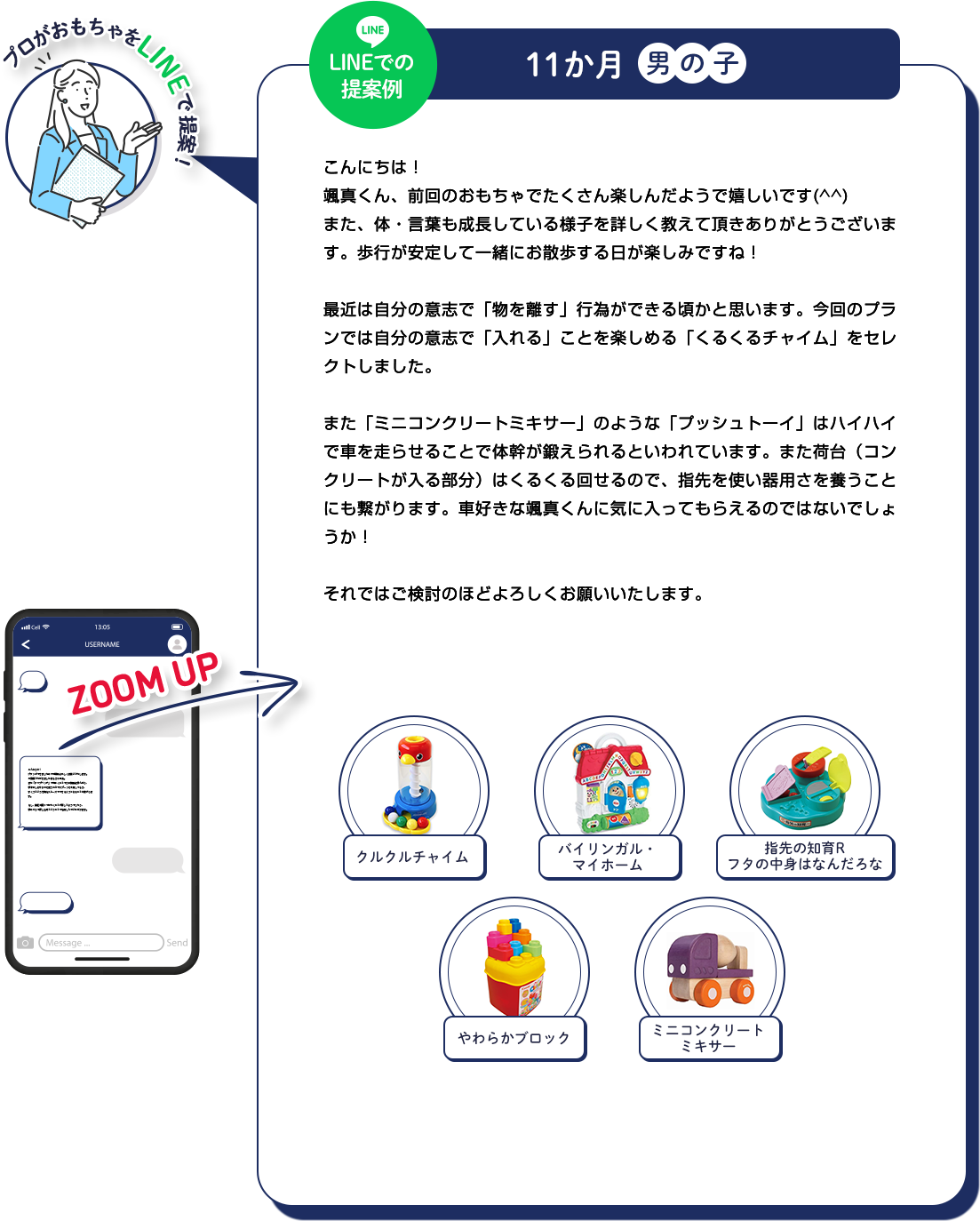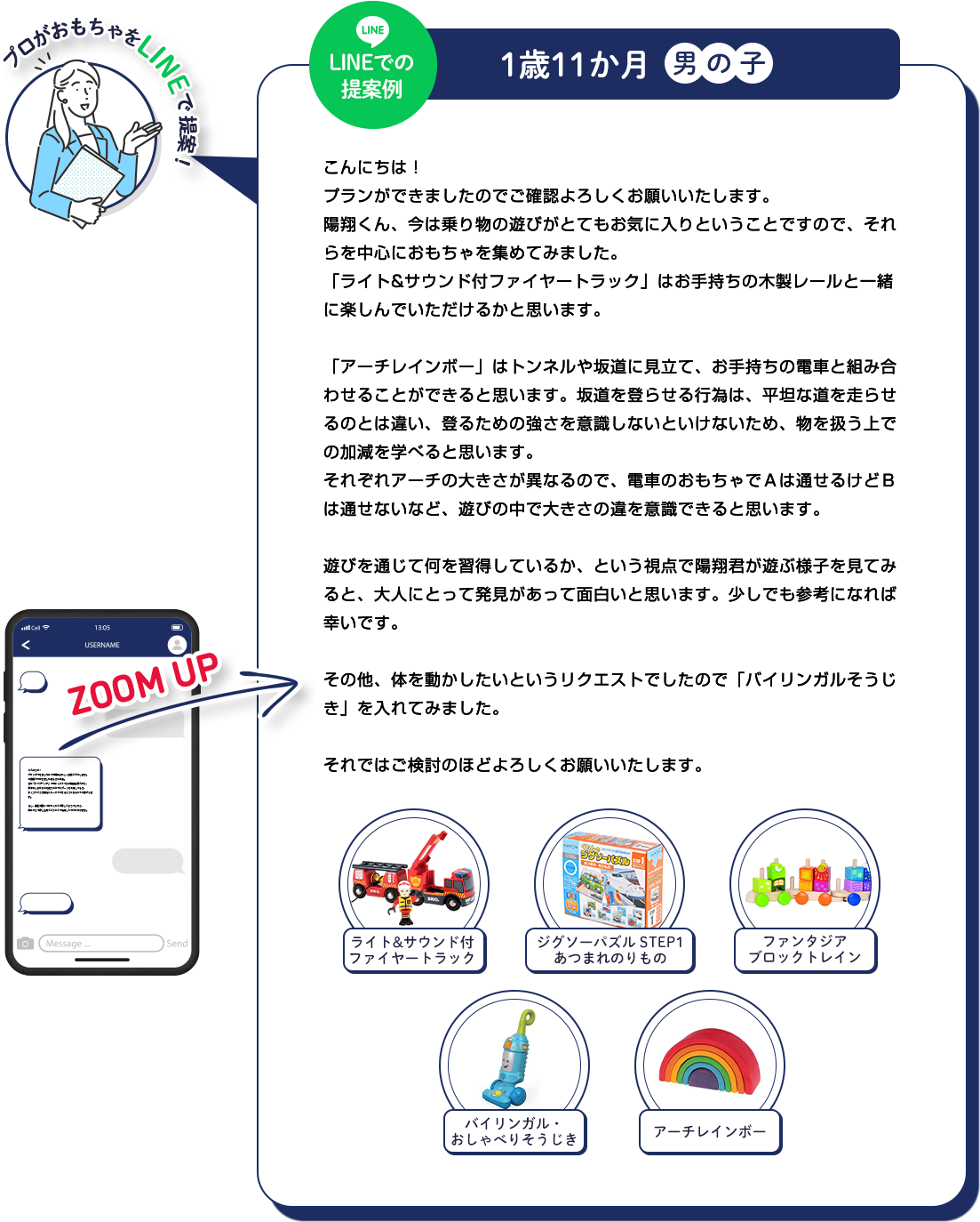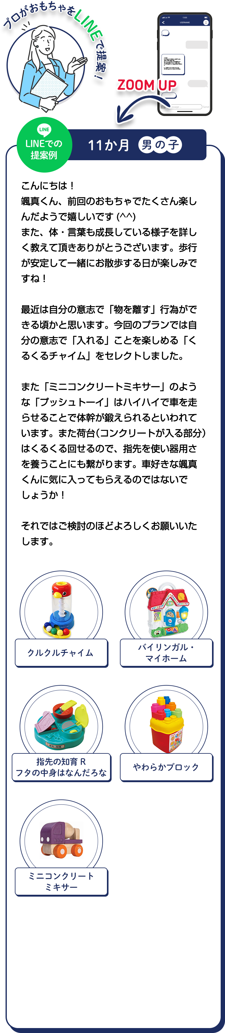 まずLINEでおもちゃプランを提案します。