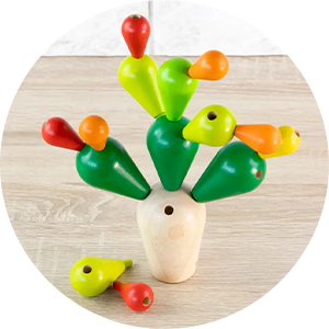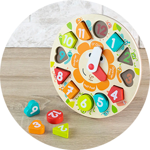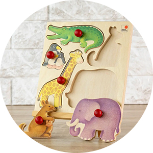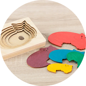 デザイン性の高い積み木、スタッキング、ノブ付きパズルなど、お子様の好みに合わせ発達を刺激する知育玩具を